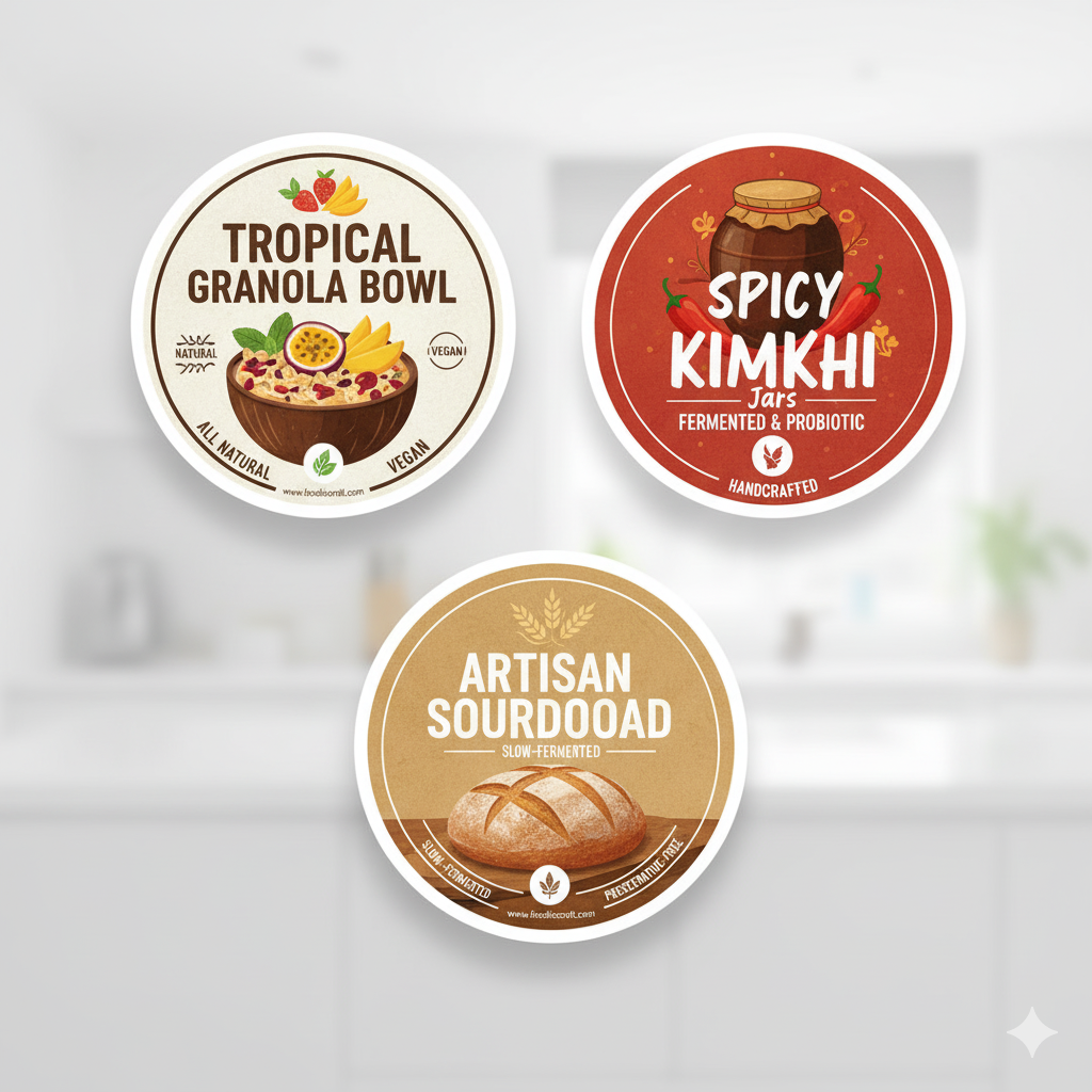 Stiker Chromo / Bontak | Bahan dasar kertas, permukaan glossy (mengkilap). | Produk kering (kue kering, kotak packaging), stiker promosi indoor, yang tidak terkena air, minyak, atau dimasukkan kulkas. Paling Ekonomis. |